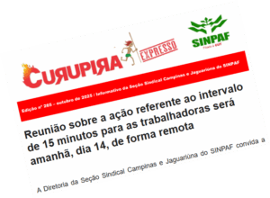 Reunião sobre a ação referente ao intervalo de 15 minutos para as trabalhadoras será amanhã, dia 14, de forma remota A Diretoria da Seção Sindical